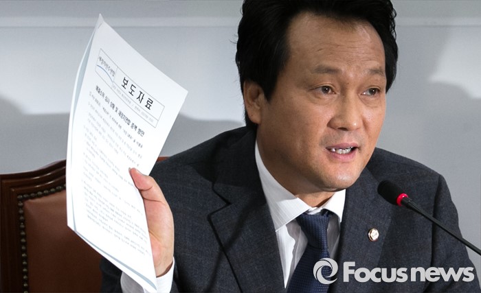 | △ 안민석 예결위 야당 간사가 지난 24일 오전 서울 여의도 국회에서 열린 새정치민주연합 원내대책회의에 참석해 예결소위 심사 방향 및 증액 방안 보도자료를 들고 발언하고 있다. <사진제공=포커스뉴스> |
