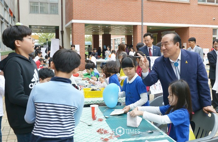 장휘국교육감은 27일 오후 1시 광주동신초등학교 중정원과 운동장에서 열린 '광주동산한마음 마을축제'에 참여해 학생, 학부모, 지역주민들과 만난 후 학교 안전 시설과 교육 현장을 둘러봤다.