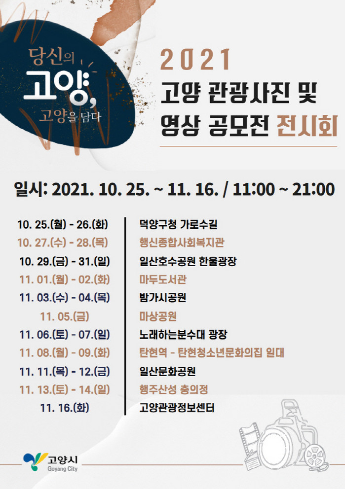 시 관계자는“이번 전시를 통해 시민들이 고양시의 멋진 풍경과 정겹고 따스한 고양의 일상을 만날 수 있는 계기가 되길 바란다”고 밝혔다.