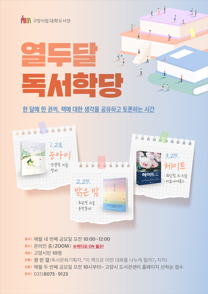 [부자동네타임즈 김인수기자] 고양시 대화도서관이 1월 28일부터 도서관의 대표적인 인문학 프로그램인 열두달 독서학당을 운영한다.