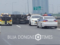 [부자동네타임즈 신동현 기자]오늘오전 11시경 강변북로 에서 화물차가 전복되어 경찰이 출동해서
