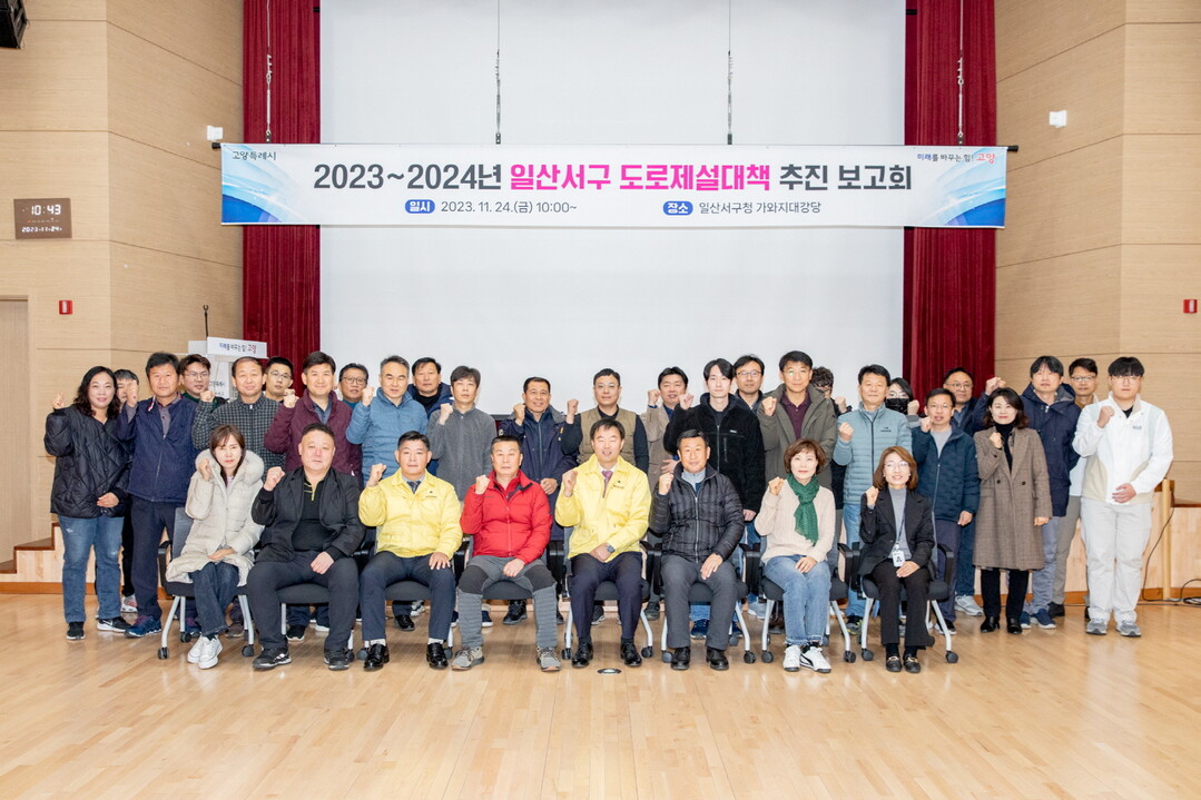 [부자동네타임즈 = 김인수 기자] 고양특례시 일산서구는 지난 24일 가와지대강당에서 정윤식 일산서구청장 주재로 구청, 각 행정복지센터, 트랙터 제설 봉사단 등이 참석한 가운데 ‘2023년~2024년 일산서구 도로제설대책 추진보고회’를 개최했다. 이날 겨울철 폭설 대응방안 등을 논의했다.
