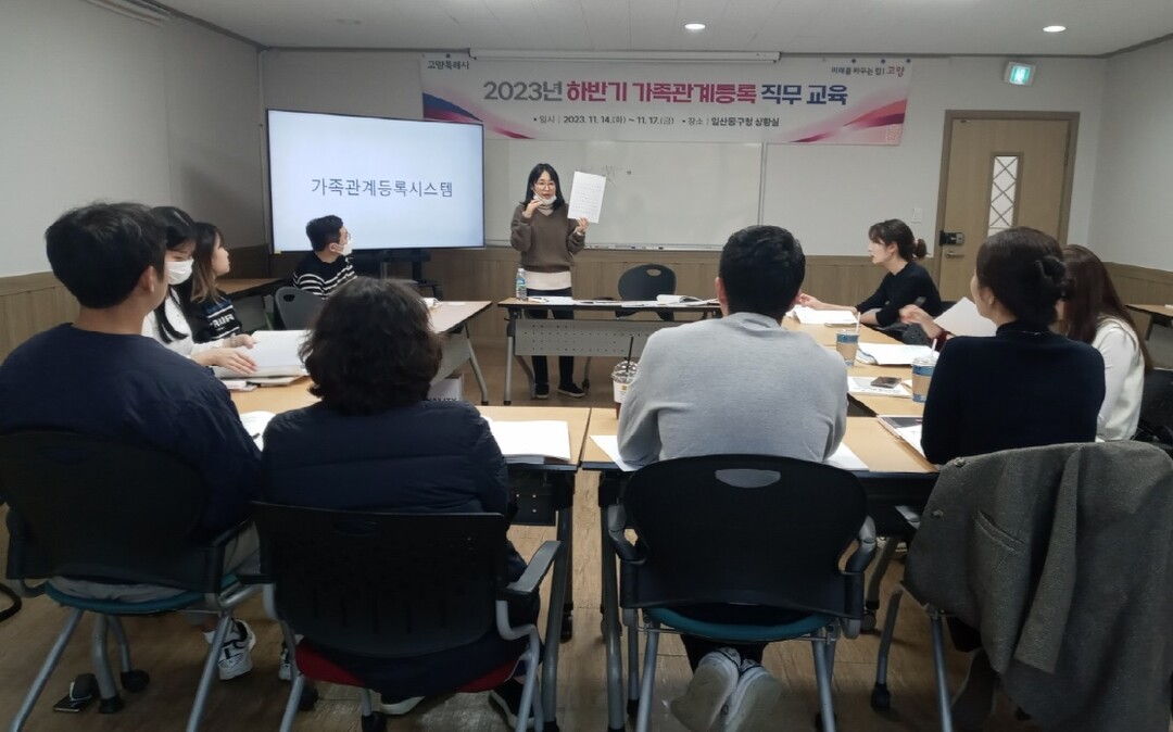 [부자동네타임즈 = 김인수 기자] 고양특례시 일산동구는 11월 17일까지 일산동구 관할 12개 동 행정복지센터 담당자를 대상으로 ‘2023년 하반기 일산동구 가족관계등록 직무교육’을 실시한다고 밝혔다.