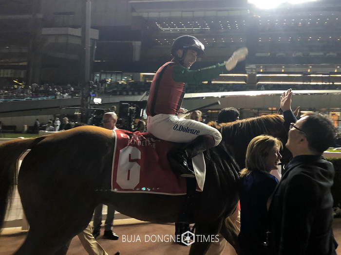 [부자동네타임즈 신동현 기자]한국 경마 대표로 ‘두바이월드컵’에 참가하고 있는 ‘돌콩(5세, 수)’이 현지시간 9일(토) 저녁 준결승 ‘슈퍼 새터데이(Super Saturday)’에서 입상에 성공했다. ‘돌콩’은 ‘Al Maktoum Challenge R3(알 막툼 챌린지 R3, GⅠ, 2000m, 3세 이상, 더트 주로, 상금 60만 US달러)’에 출전해 10두 중 3위를 거머쥐었다. 2위와 겨우 목차(약 60cm)의 선전이었다.