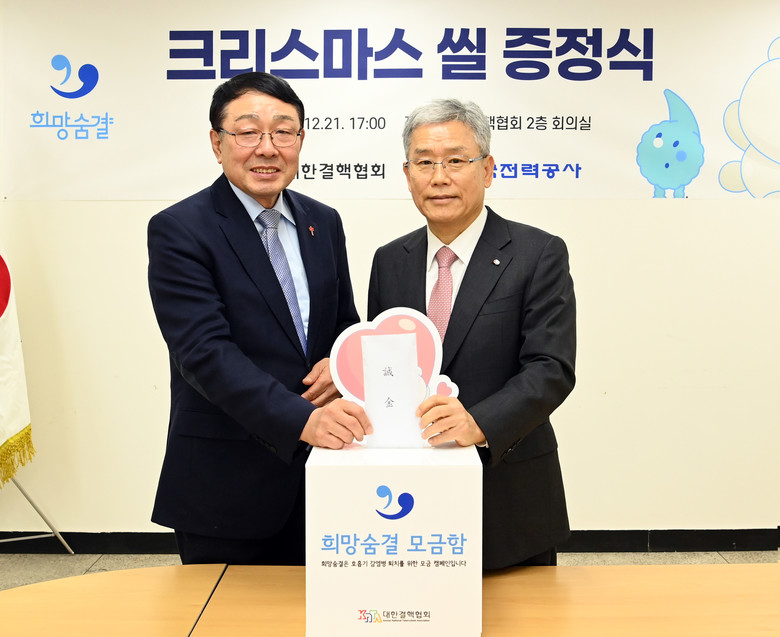 한국전력(이하 한전) 김동철 사장은 12월 21일(목) 서초구 대한결핵협회(회장 신민석) 회의실에서 임직원이 모금한 성금을 ‘2023년 크리스마스씰 모금 캠페인’ 참여의 일환으로 대한결핵협회에 전달하였다.