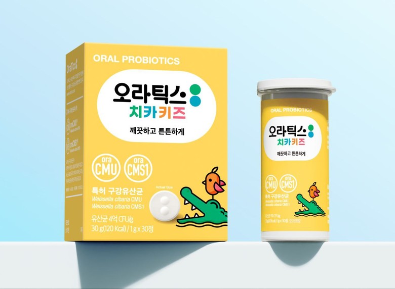 이번에 전달된 오라틱스 치카키즈는 독자개발 특허 균주 2종을 함유하고 있는 어린이 구강유산균 제품으로 양치하기 싫어하거나 양치질이 서툰 아이에게 양치 보상 선물로 활용 가능하다.