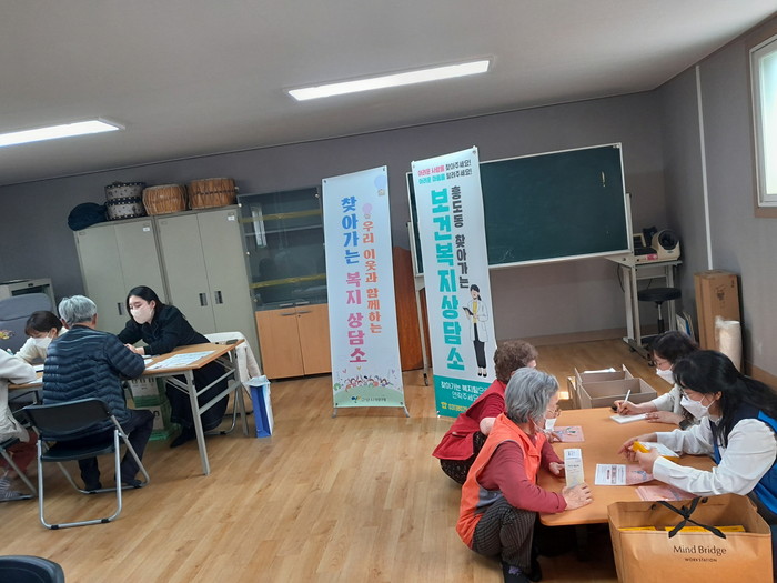 이번 찾아가는 복지상담소는 흥도동 행정복지센터 찾아가는 복지팀과 고양시원흥종합사회복지관, 보듬정서코칭센터가 참여하여 함께 진행하였다.