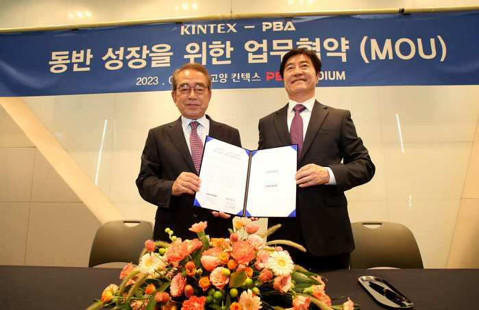 이날 협약식에는 PBA 김영수 총재와 킨텍스 이재율 대표이사 등 주요 관계자가 참석했다 협약 내용은 PBA가 킨텍스 내 입주한 시설물로서 상호 간 동반성장을 위하여 상호간 협조한다는 것이 주요 골자다.