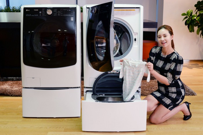 신제품의 상단 드럼세탁기 출하가격은 150만원대이며 하단 트롬 미니워시는 70만원대다.