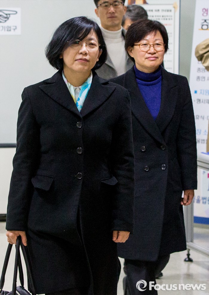 (서울=포커스뉴스) 지난 '한미FTA 반대집회'에서 일반교통방해 혐의로 기소된 이정희(왼쪽) 전 통합진보당 대표가 항소심 선고를 마친 뒤 3일 오전 서울 서초구 서울중앙지방법원을 나서고 있다.