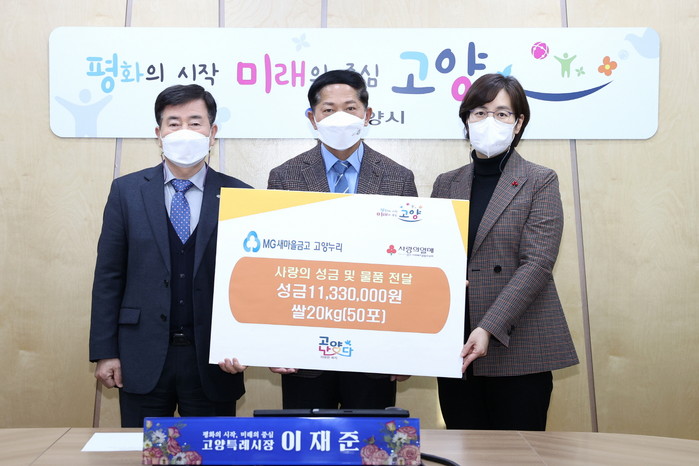 전달식에는 고양누리새마을금고 김재진 이사장 및 관계자, 경기사회복지공동모금회 강주현 본부장, 시관계자들이 함께했다.
