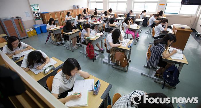 | △ 2016학년도 대학수학능력시험을 앞두고 마지막 모의평가가 실시된 지난 9월 2일 오전 서울 양천구 신정로 금옥여자고등학교에서 3학년 수험생들이 복습을 하고 있다. <사진제공=포커스뉴스> |