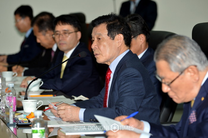 윤장현 광주광역시장은 17일 호후 소촌공단 내 대유에이텍 R&D센터에서 열린 '2016년 상반기 노사민정협의회 본회의'를 주재하고 있다.