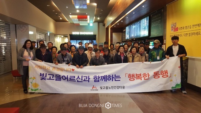 | △광주복지재단 빛고을노인건강타운은 10월 문화의 달을 맞아 평소 문화향유 기회가 적은 지역 독거노인을 대상으로 영화관람 및 점심식사를 대접하는 나눔행사를 진행했다 |