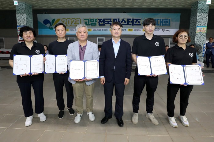 이동환 고양시장은 고양시 수영 발전과 생활체육 활성화에 기여한 공로로 김상섭 수영연맹회장 등 5명에게 표창장을 수여했다.