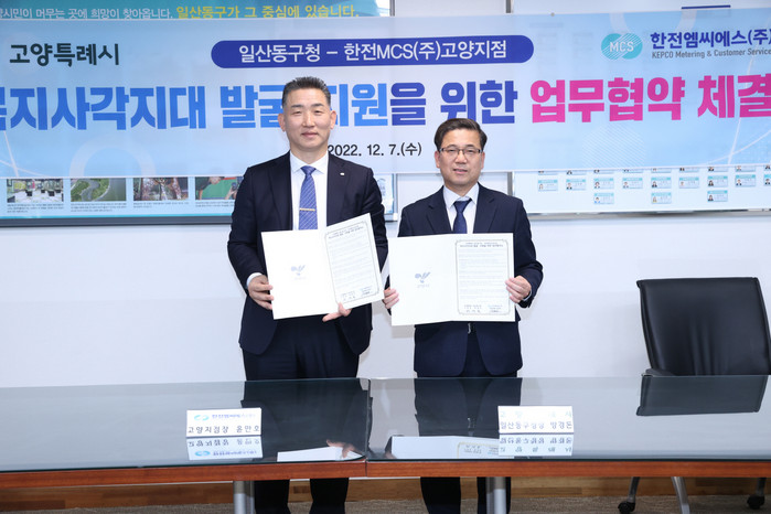 [부자동네타임즈 김인수기자] 고양특례시 일산동구는 지난 7일 한전MCS고양지점과 복지사각지대 발굴·지원을 위한 업무협약을 체결했다고 밝혔다.