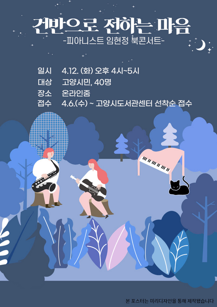 [부자동네타임즈 김인수기자] 고양시 행신도서관이 4월 12일(화)에 북콘서트 건반으로 전하는 마음 프로그램을 운영한다.