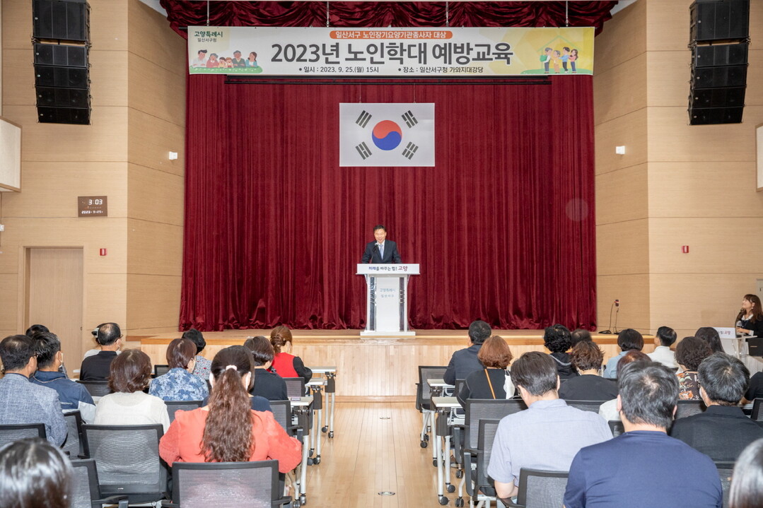 [부자동네타임즈 = 김인수 기자] 고양특례시 일산서구는 지난 25일 가와지대강당에서 관내 노인장기요양기관 대표 및 종사자 100여 명이 참석한 가운데‘노인장기요양기관 종사자 노인학대 예방 교육’을 실시했다.