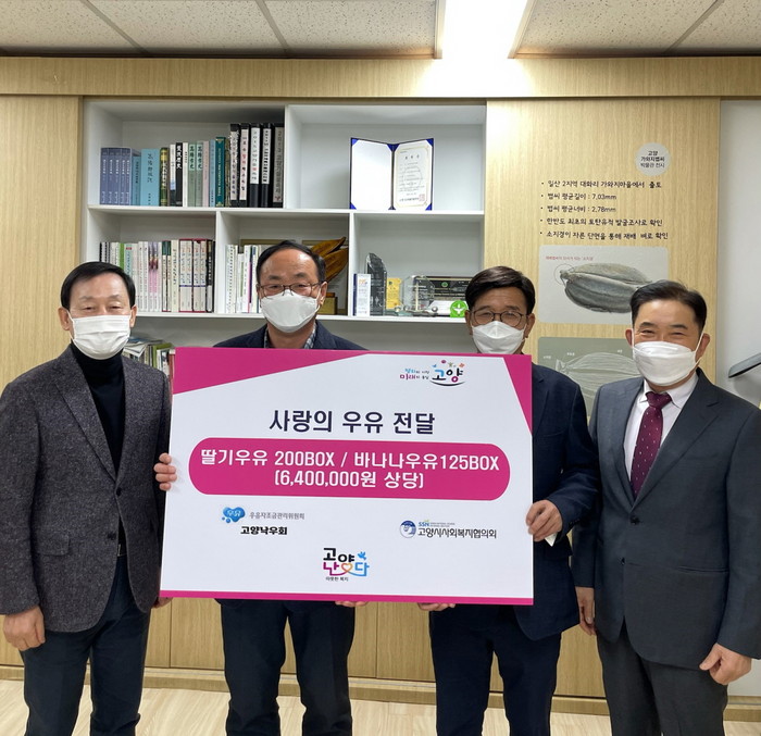 [부자동네타임즈 김인수기자] 고양시가 10일 고양낙우회와 우유자조금관리위원회가 640만원 상당의 우유를 기부해 전달식을 개최했다.