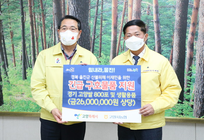 한편, 고양시와 울진군은 2003년도에 자매결연도시를 체결한 이후에 지속적으로 교류를 이어오고 있다. 지난 4일 산불이 발생한 이후 고양시는 간부공무원을 비롯한 전 직원들의 자발적인 성금모금을 진행하여 약 1,900만원 상당의 성금을 기부하였다.
