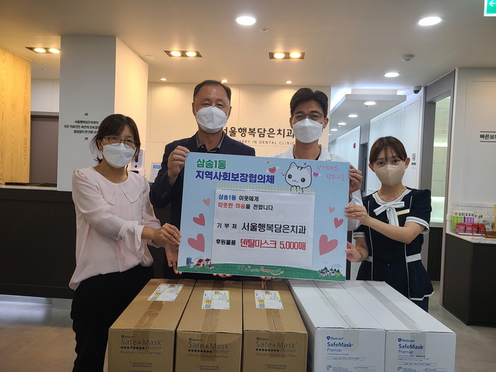 [부자동네타임즈 김인수기자] 고양특례시 삼송1동행정복지센터(동장 김동원)는 지난 21일 관내 서울행복담은치과의원(이하 행복담은치과)에서 저소득층을 위한 덴탈마스크 5,000매를 후원했다고 밝혔다.