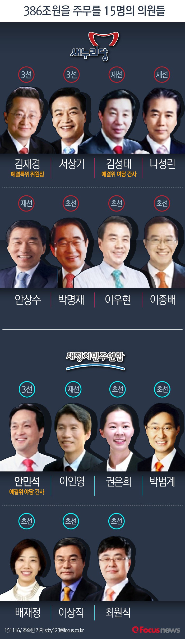 | △ [그래픽] 2016년 예산안 조정소위원회 최종 15인. <포커스뉴스> |