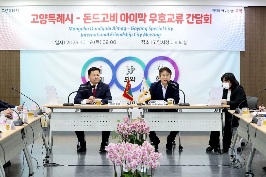 [부자동네타임즈 = 김인수 기자] 몽골 돈드고비 아이막 대표단이 19일 고양특례시(시장 이동환)을 방문했다. 이동환 고양특례시장은 고양시청에서 우호 교류 간담회를 열고 도시 간 협력 강화 방안을 논의했다.