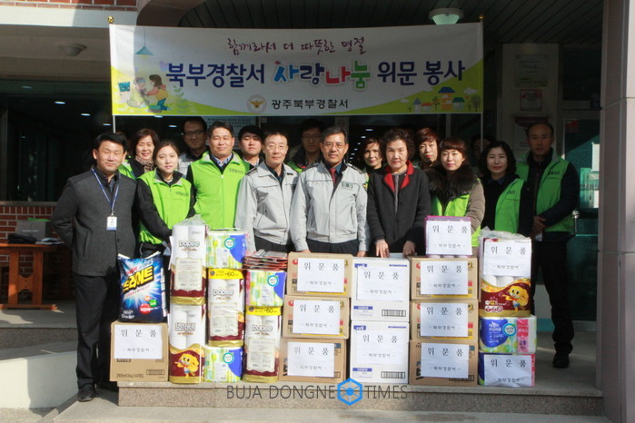 광주북부경찰서는 1월 19일 11시경 설 명절을 맞아 우리 주변 이웃과 따뜻한 정을 나주고자 '광주애육원'을 방문하였다. 광주애육원을 약 70여 명의 아이들이 생활하고 있는데 취학 전 아이들로부터 중·고등학생들까지 연령대도 다양하다.