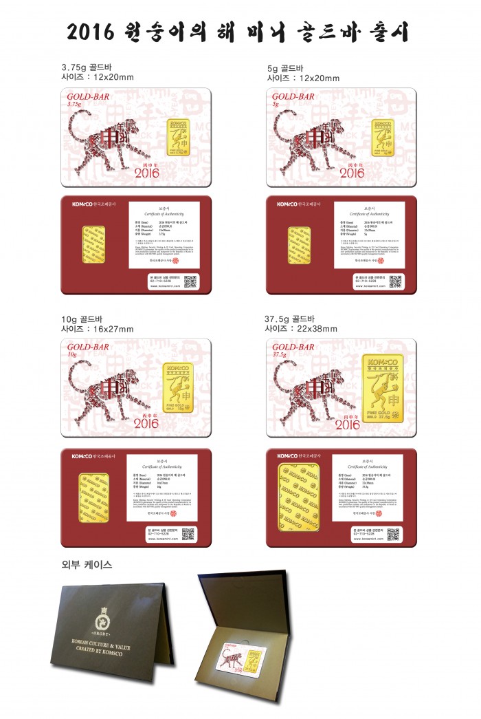 이번 미니골드바의 제품 케이스는 붉은 원숭이 해를 본떠 붉은 톤 계열로 디자인했으며 골드바 디자인은 천도복숭아를 손에든 원숭이로 제작됐다.