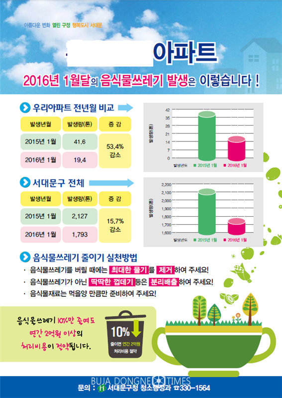 서대문구는 주민들의 쓰레기 감량 실천 분위기 조성을 위해 음식물쓰레기 감량 결과를 주민에게 적극 알리고 있다.