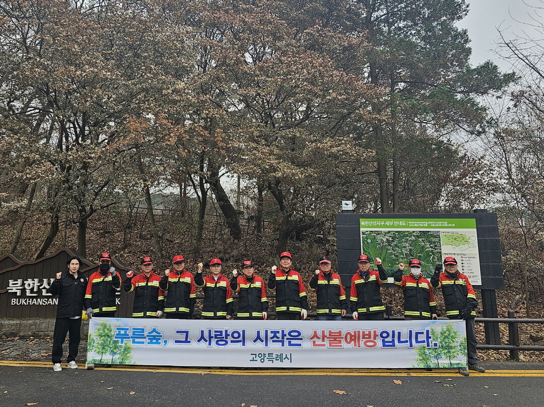 ‘푸른숲, 그 사랑의 시작은 산불예방입니다.’를 캠페인 슬로건으로 하여 덕양구 환경녹지과 직원 및 산불전문예방진화대원 등 20여 명이 북한산국립공원 등산로 입구에서 산불예방에 대해 안내하고 홍보물을 배부했다.