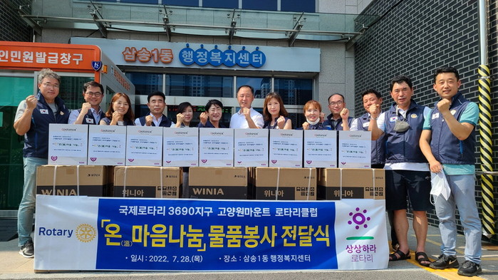 국제로타리 3690지구 고양원마운트 로타리클럽은 지난 7월 18일 삼송1동 행정복지센터와 「온(溫)마음 나눔」 업무협약을 맺고, 삼송1동 취약가구를 대상으로 복지사업을 펼쳐나가고 있는 곳이다.