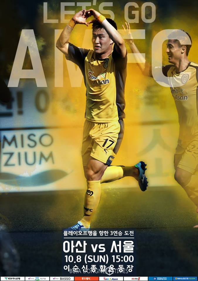 [부자동네타임즈 이세제 기자]최근 2연승으로 ‘상승세’를 기록중인 아산무궁화프로축구단(이하 아산)이 서울E를 상대로 지난 경기 역전패 설욕 및 ‘리그 3연승’으로 ‘승강 PO행’ 진출을 노린다.