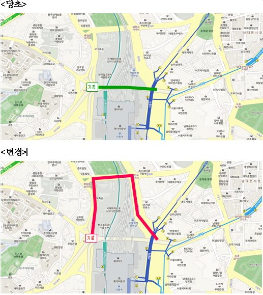 | △ 서울역 고가도로 노선변경 전 후 모습. <사진제공=국토교통부> |