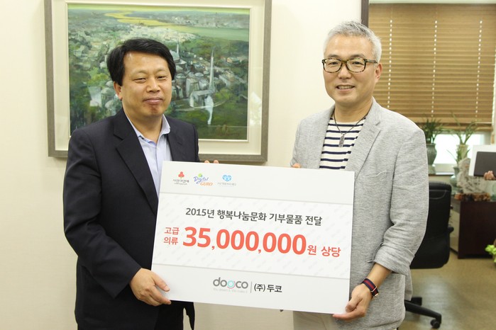 지난달 31일에는 구로동에 위치한 유통전문기업인 ㈜두코가 고급스포츠 의류 671벌(3,500만원 상당)을 어려운 이웃을 위해 기부했다.