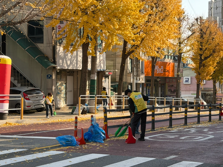 이에 봉사자들은 인도와 차도를 중심으로 쌓인 낙엽과 은행나무 열매를 집중적으로 수거했다. 바람에 날려 도로까지 퍼진 낙엽을 빗자루와 긁개로 모아 정리하고 악취가 심한 은행 열매는 골목을 순회하며 봉투에 담아 제거했다. 특히 차량 통행이 많은 도로변과 보행이 많은 인도 주변은 미끄럼 사고 가능성이 높아 낙엽과 은행 열매를 꼼꼼히 제거해 안전한 통행 환경 조성에 힘썼다.