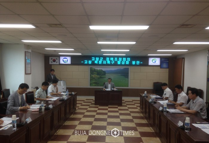 10일 군청 상황실에서 열린 정책조정회의는 김상호 고창군 부군수와 군장대 황만길 교수, 우석대 황태규 교수, 전북연구원 김수은 박사 등 전문가들이 참석한 가운데 열렸다.