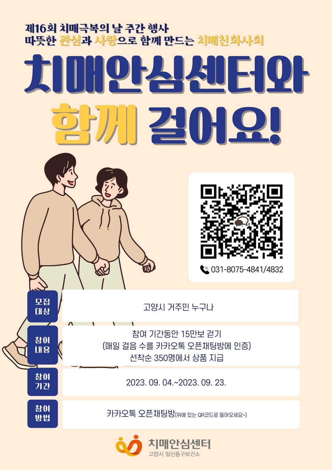 일산동구보건소 치매안심센터는 ‘치매극복의 날’을 기념하기 위해 9월 4일(월)부터 9월 22(금)까지 비대면 걷기대회를 진행한다.