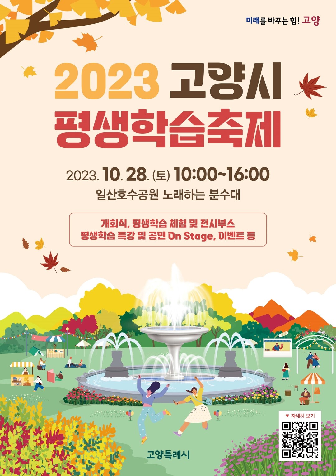 시 관계자는 “시민의 생애 주기에 맞춘 평생 교육 프로그램을 선도적으로 운영해온 고양시가 선보이는 평생학습 축제에 많은 시민이 방문하셔서 배움의 기쁨을 느끼고 고양시의 우수한 평생 학습 프로그램에 대해 알아보시기 바란다”라고 전했다.