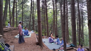 △ 힐리언스 종자산에서 자연명상 하는 모습. <사진제공= 힐리언스> |