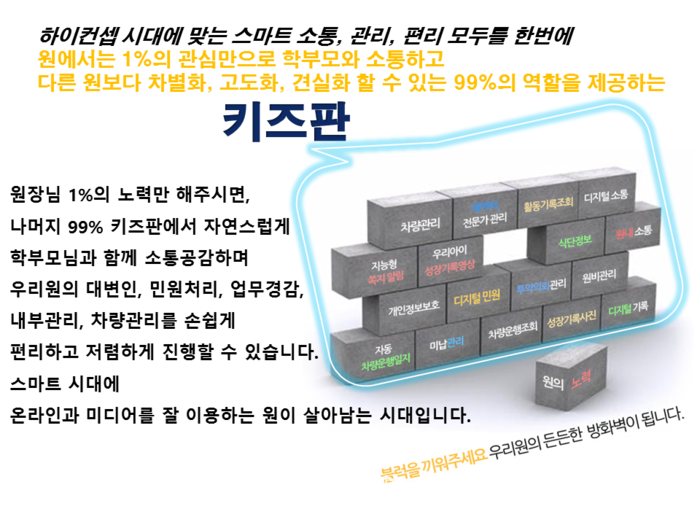IT를 통한 유치원, 어린이집의 잠재력이 극대화 되는 놀라운 스마트 시스템이 개발되어ISSUE되고 있다. 바로 '키즈판'이다.