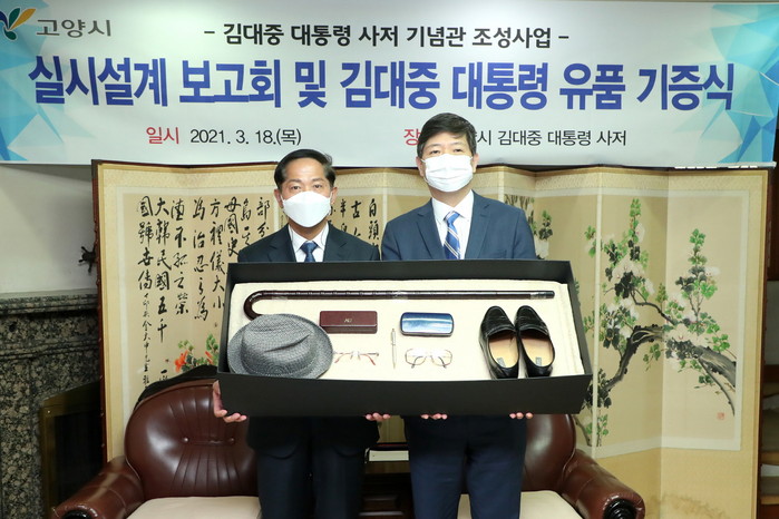 이 자리에서 김홍걸 국회의원은 김 전 대통령과 이희호 여사가 실제로 사용했던 지팡이, 안경, 펜, 의류 등 30종 76개 유품들을 고양시에 전달했다.