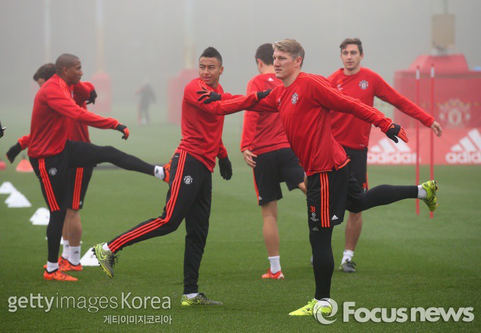| △ <맨체스터/영국=게티/포커스뉴스> 맨체스터 유나이티드 선수들이 4일 새벽(한국시간)에 열린 CSKA 모스크바와의 챔피언스리그 조별라운드 4차전 홈경기를 앞두고 몸을 풀고 있다. (C)게티이미지/멀티비츠 |