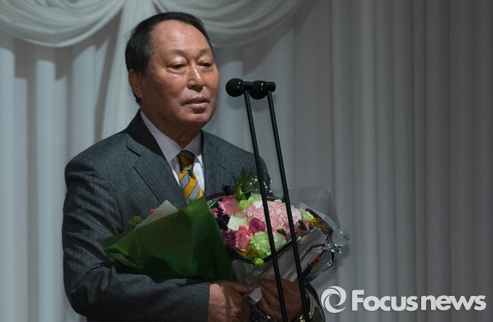 | △ 7일 오전 서울 강남구 청담동 리베라호텔 베르사이유홀에서 열린 ‘2015 넷마블 마구마구 일구상 시상식’에서 일구대상을 수상한 김인식 감독이 수상소감을 말하고 있다 . <사진제공=포커스뉴스> |