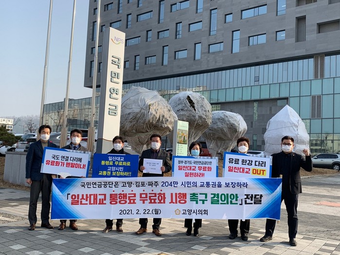 [부자동네타임즈 김인수기자] 고양시의회(의장 이길용)는 "2월 22일 국민연금공단을 방문하여 일산대교 통행료 무료화 촉구를 요구하는 서한을 전달하였다."고 밝혔다.