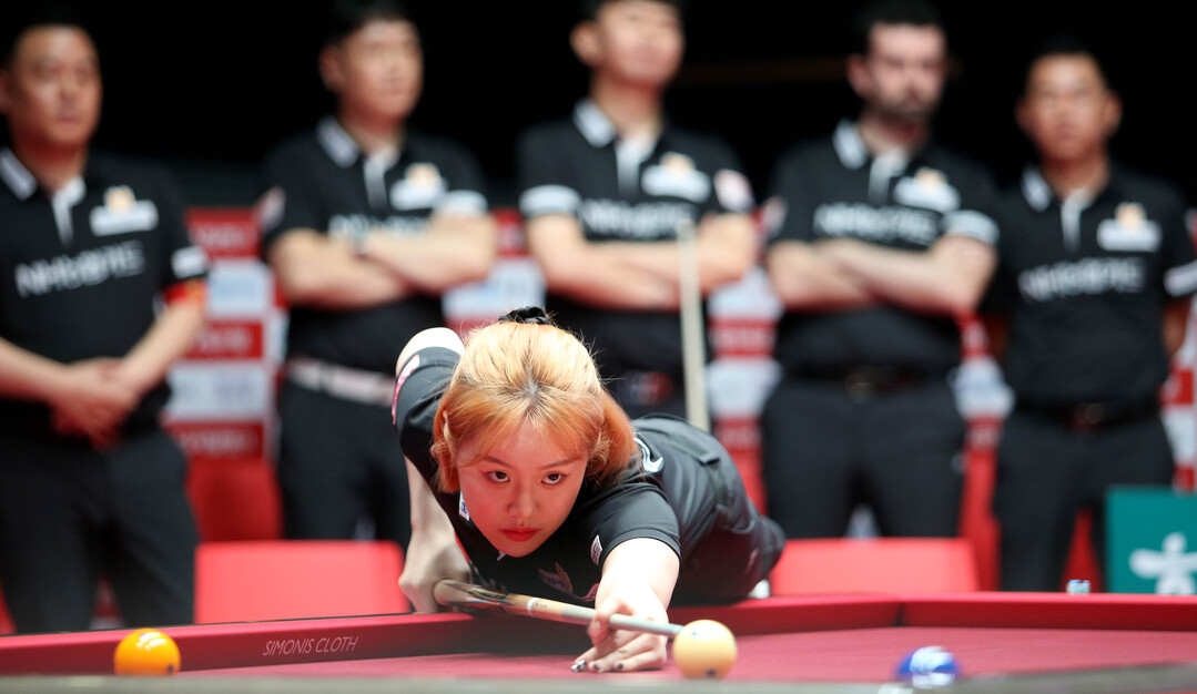 지난 14일 경기도 고양시 ‘고양 킨텍스 PBA 스타디움’에서 열린 ‘웰컴저축은행 PBA 팀리그 2023-2024’ 3라운드 1일차 경기서 NH농협카드는 ‘팀 리더’ 조재호와 김보미가 2승을 거두는 맹활약에 힘입어 에스와이를 세트스코어 4:0으로 물리치고 쾌조의 스타트를 끊었다.