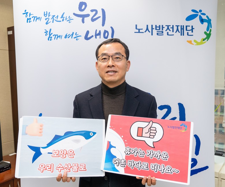 노사발전재단(이하 ‘재단’) 김대환 사무총장이 1월 19일 ‘수산물 소비 및 어촌휴가 장려 캠페인’에 참여했다.