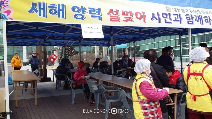 천태종 불자님중 보살님 처사님들이 설맞이 나눔행사에 봉사참여 했다.