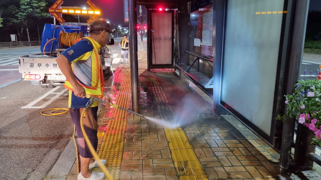 간선급행버스(BRT) 승강장의 경우 이용객들의 불편을 최소화하고자 새벽시간(0시 ~ 4시)을 이용해 고압으로 물 세척을 실시하고 있으며, 버스·택시 승강장은 각 동별 지역을 순회하면서 물청소, 잡초제거 등 환경 정비를 실시하고 있다.