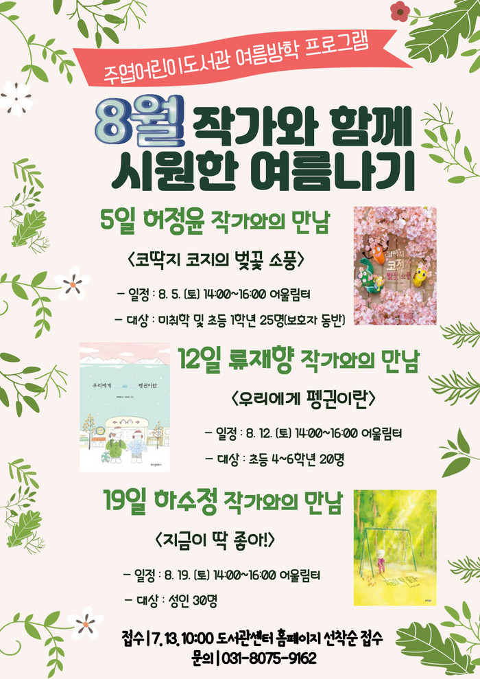 [부자동네타임즈 김인수기자] 세계그림책 특성화 주엽어린이도서관이 여름방학을 맞아 3명의 그림책 작가와 특별한 여름 프로그램을 준비했다. 도서관은 ‘작가와 함께 시원한 여름나기 프로젝트’를 운영해 어린이도 어른도 함께할 수 있는 작가와의 만남을 주선한다.